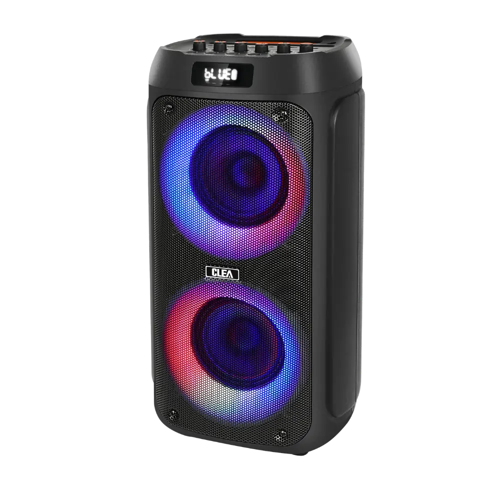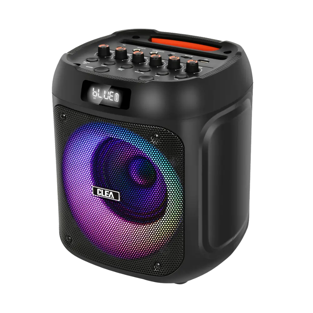 Compact party speaker with 100 W output and LED light effects. Ideal for small rooms and house gatherings.