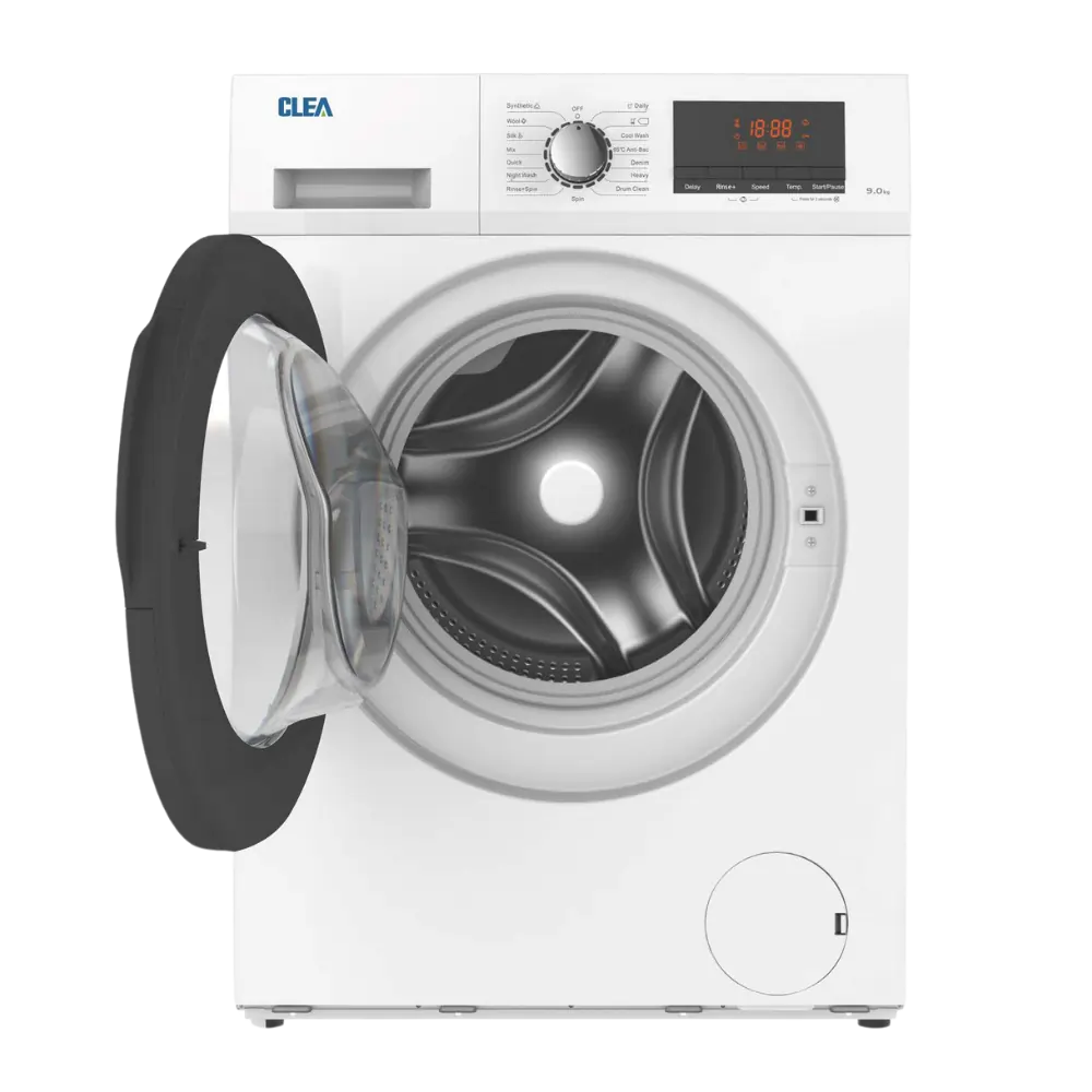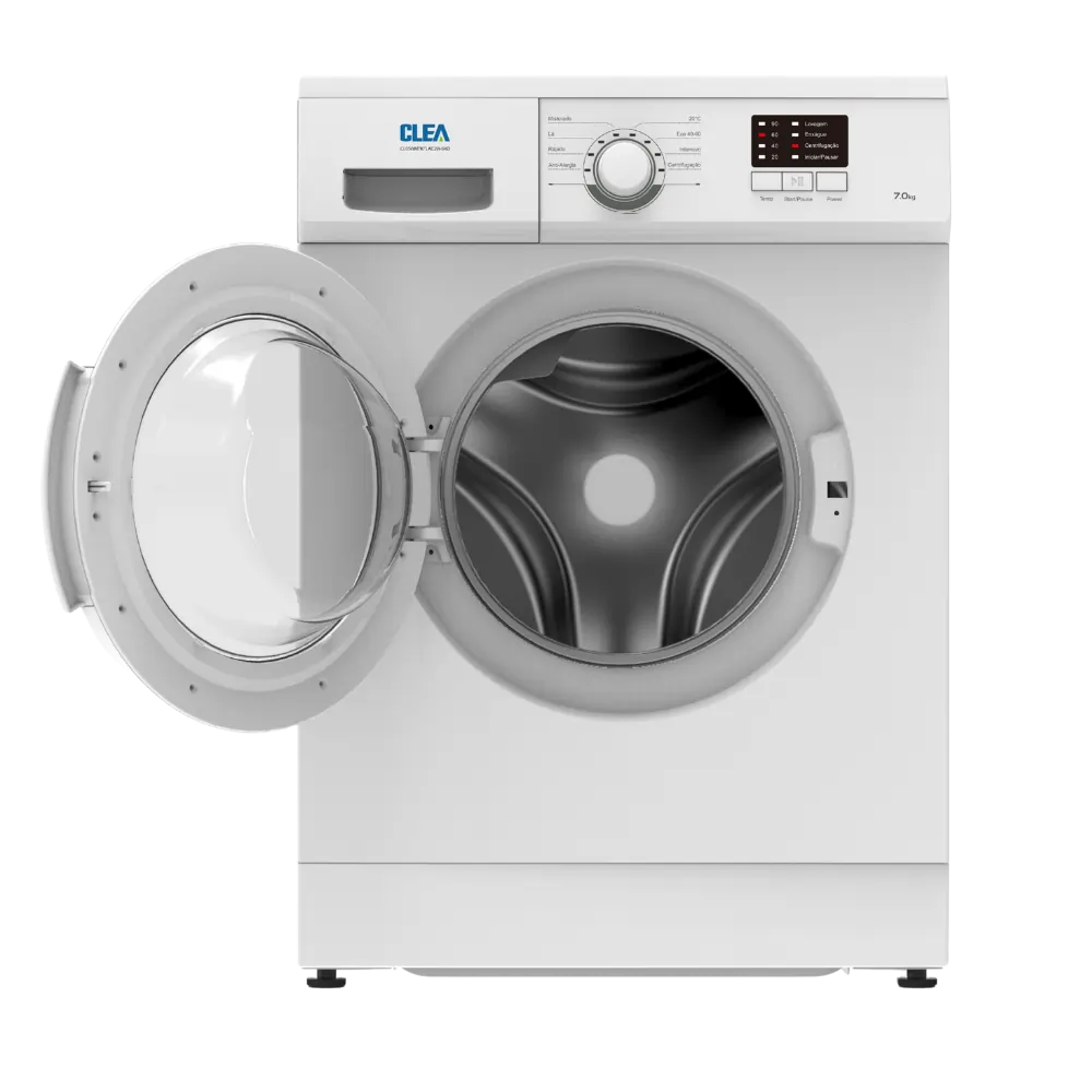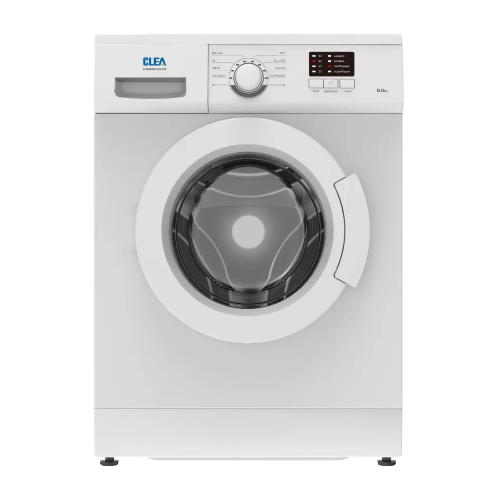 Compact 6 kg front loader with A+ efficiency, 8 programs, and stainless steel drum. Simple LED controls and 800 rpm spin.