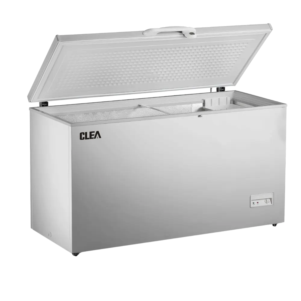 327 liter chest freezer with −18 °C storage, external condenser, and simple manual defrost. Efficient R600a refrigerant.