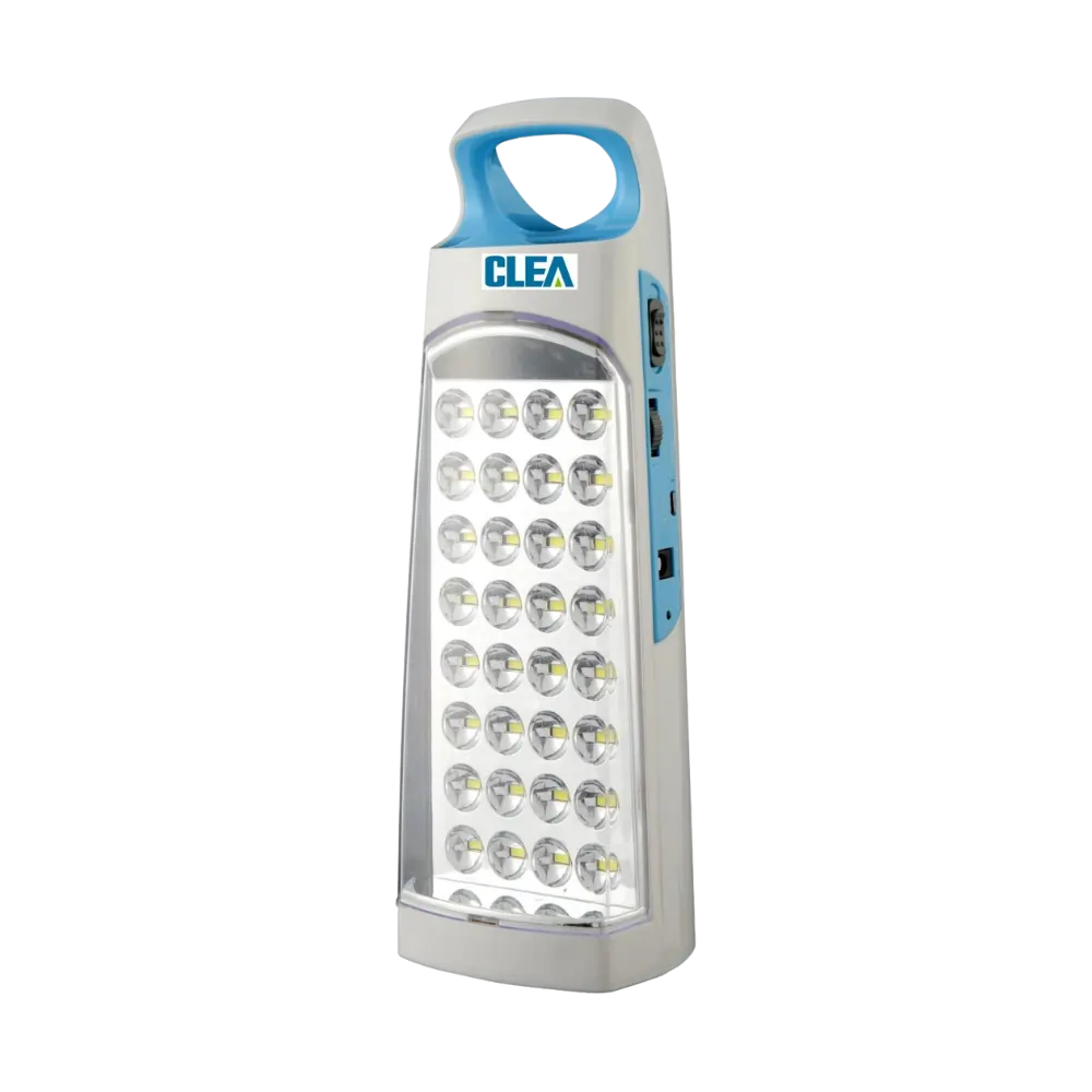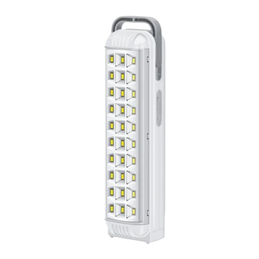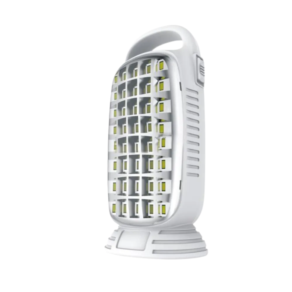 40-LED emergency lantern with 4V 1600 mAh battery, strong/weak modes, carry handle, and 2–5 h runtime.