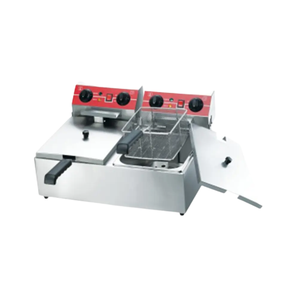 Fry different foods at once with this double-tank electric fryer. With two 3-liter tanks and a wide temperature range, it's perfect for high-demand kitchens needing flexibility and speed.
