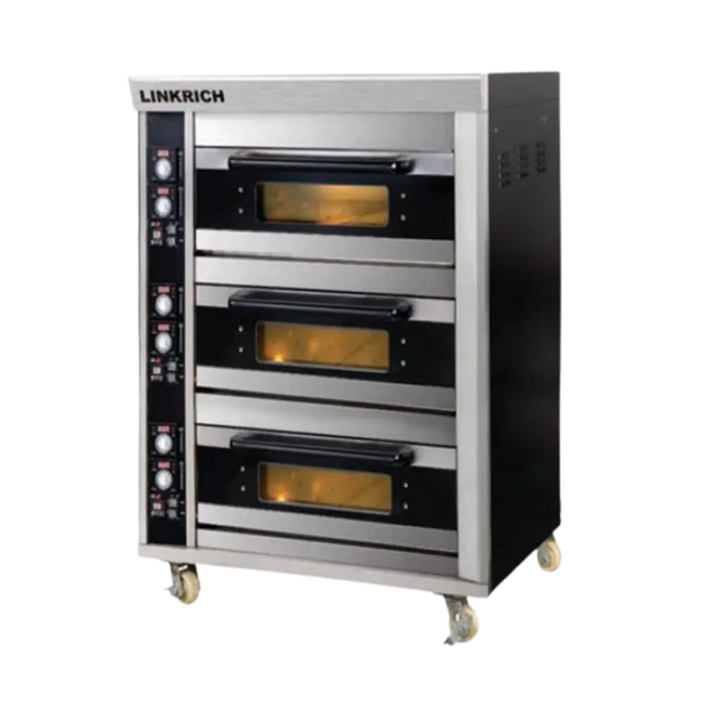Bake multiple items at once with this 3-deck electric oven. With a temperature range of 20-400°C, it's perfect for a variety of baking needs in a high-demand commercial kitchen.