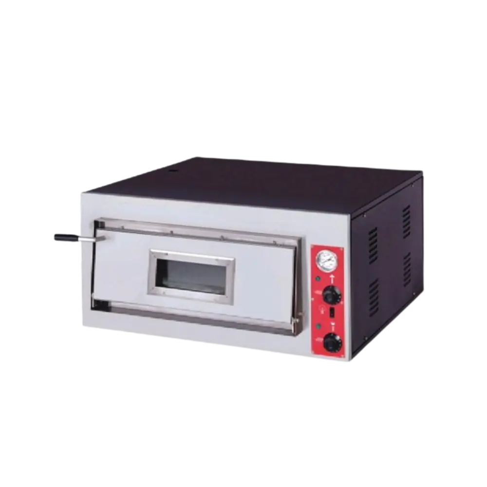 Cook delicious pizzas with this efficient Single-Deck Commercial Pizza Oven. It can hold up to four 12-inch pizzas and reaches temperatures up to 400°C, delivering consistent, high-quality results.