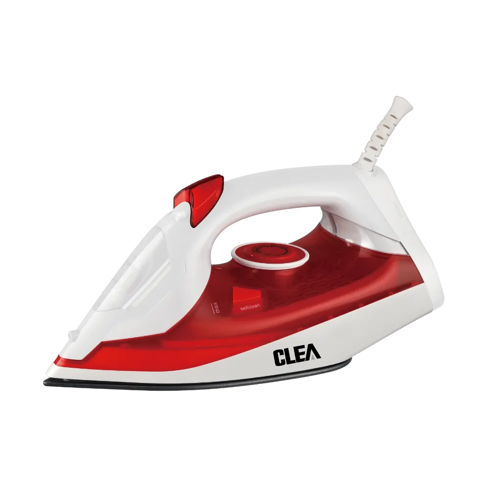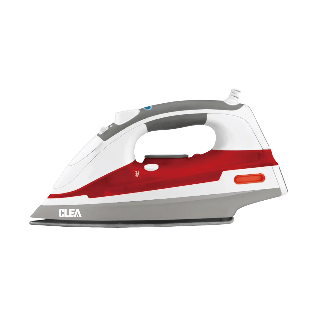 High-power 2400 W steam iron with a 400 ml tank and smooth-glide soleplate, fast heat-up, reliable steam, and crisp results in a bold red finish.