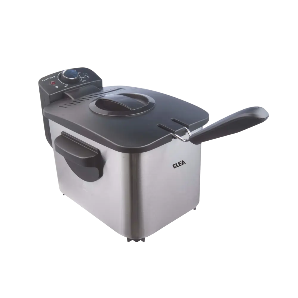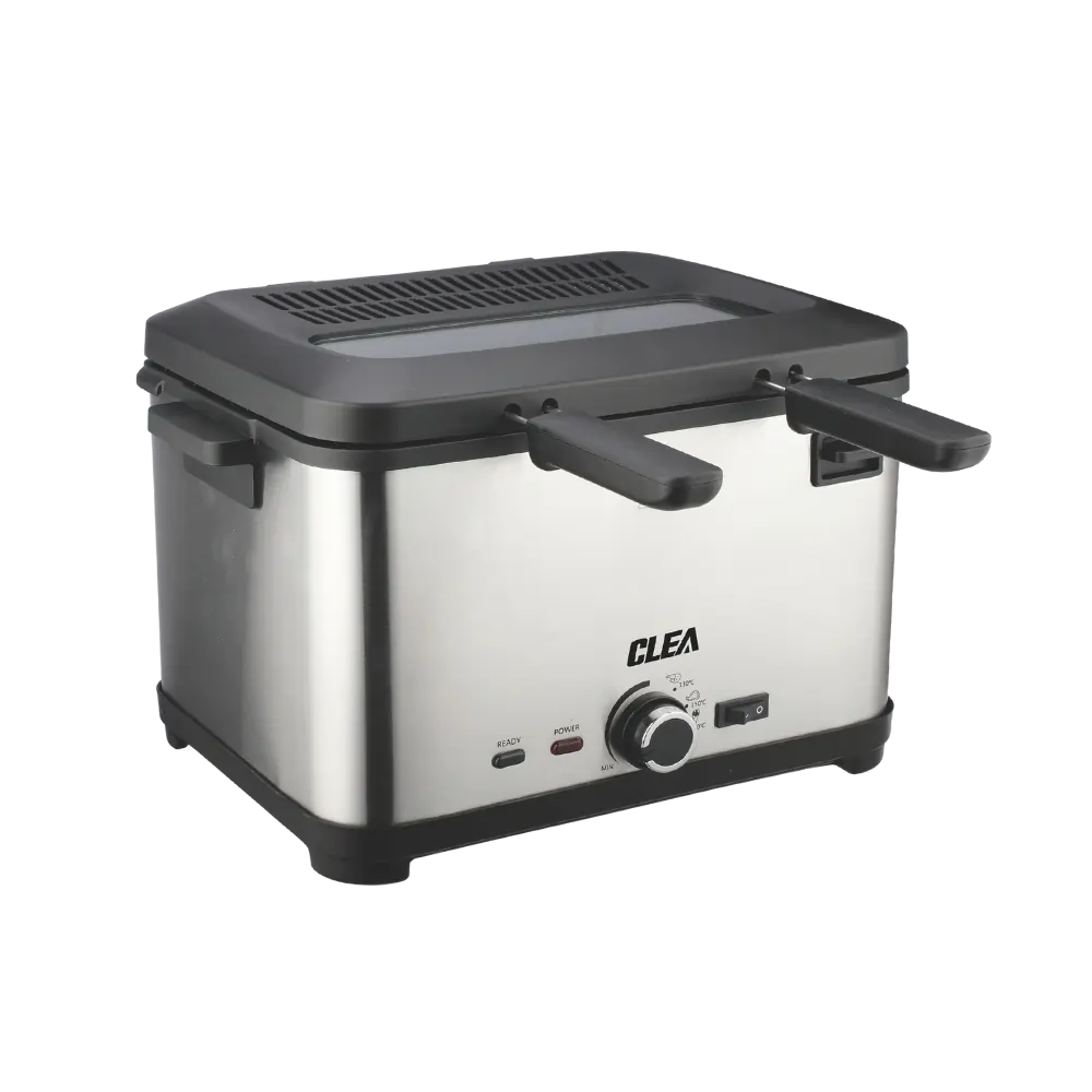 Stainless-steel 3-liter deep fryer with fast 1850–2200W heating and an indicator light—great for quick, crispy batches at home.