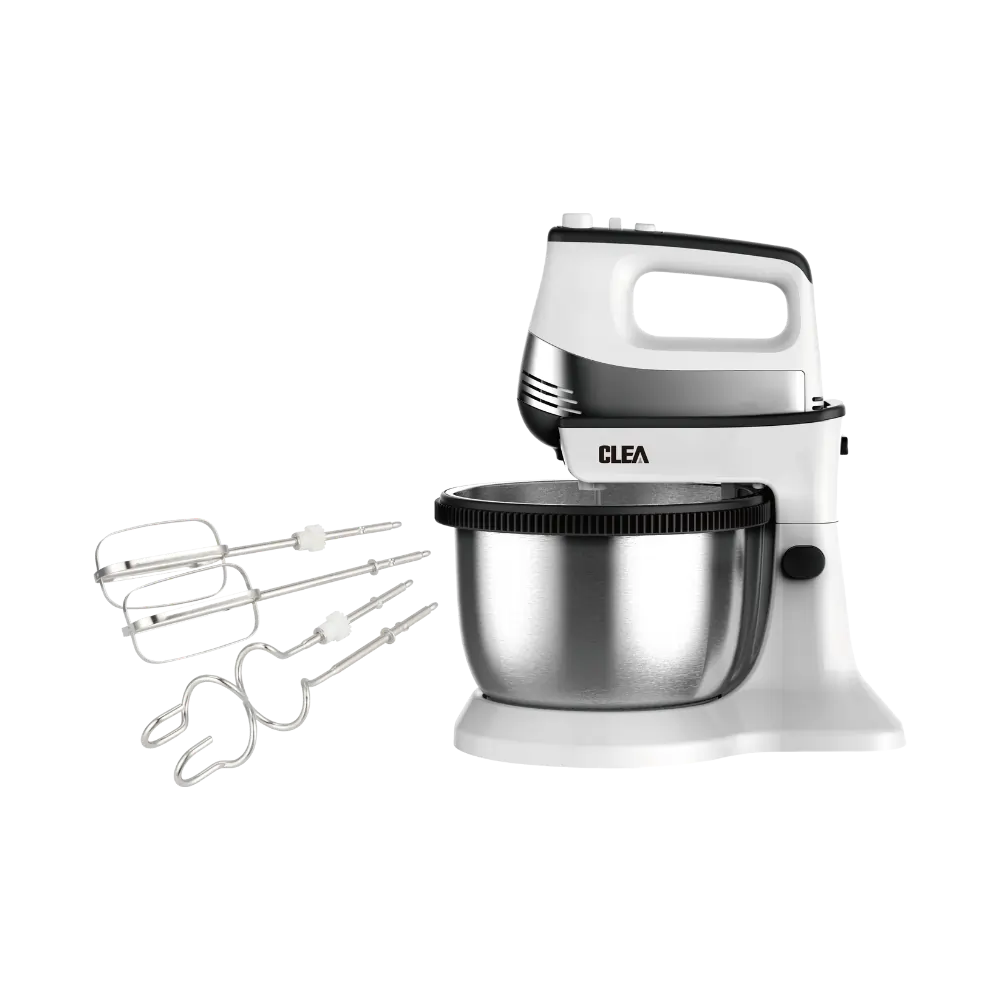 A compact 500 W stand mixer with a 3.4 L rotating stainless bowl, 5 speeds plus Turbo, and both beaters and dough hooks—ideal for everyday mixing, whipping, and dough preparation.