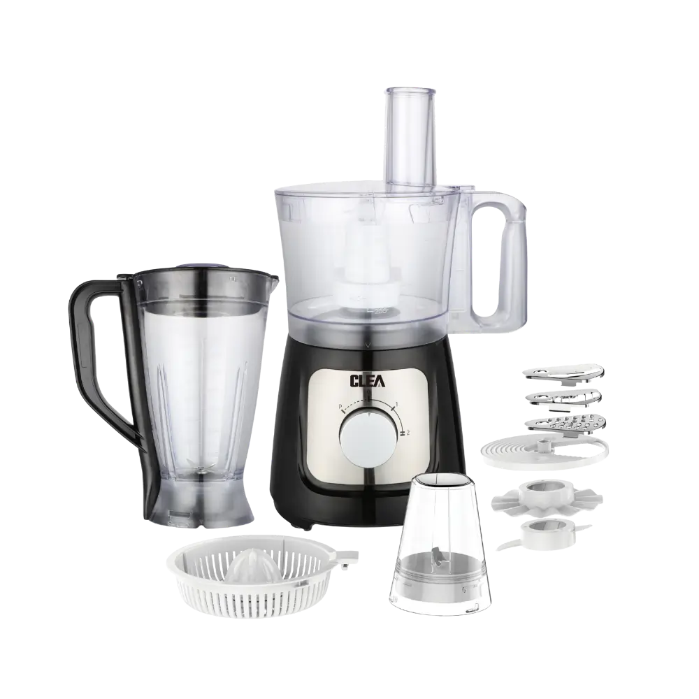 A versatile 800-watt prep station with a 2.4 L bowl, two speeds plus Turbo, stainless-steel blades and multi-attachments for chopping, slicing, grating, whisking, juicing and blending—everything you need for everyday cooking.