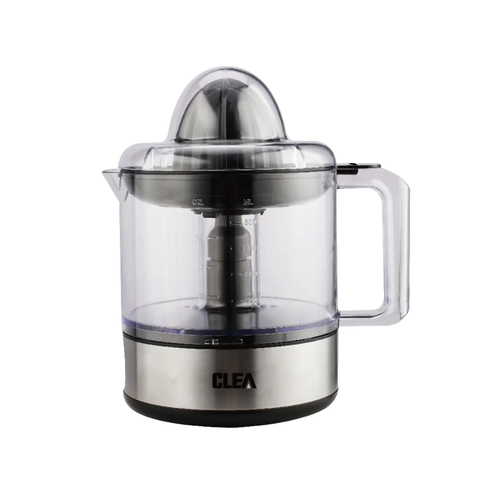 Compact 30W citrus juicer with a 0.5 L jug, bidirectional squeezing and a built-in filter for smooth, pulp-controlled juice.
