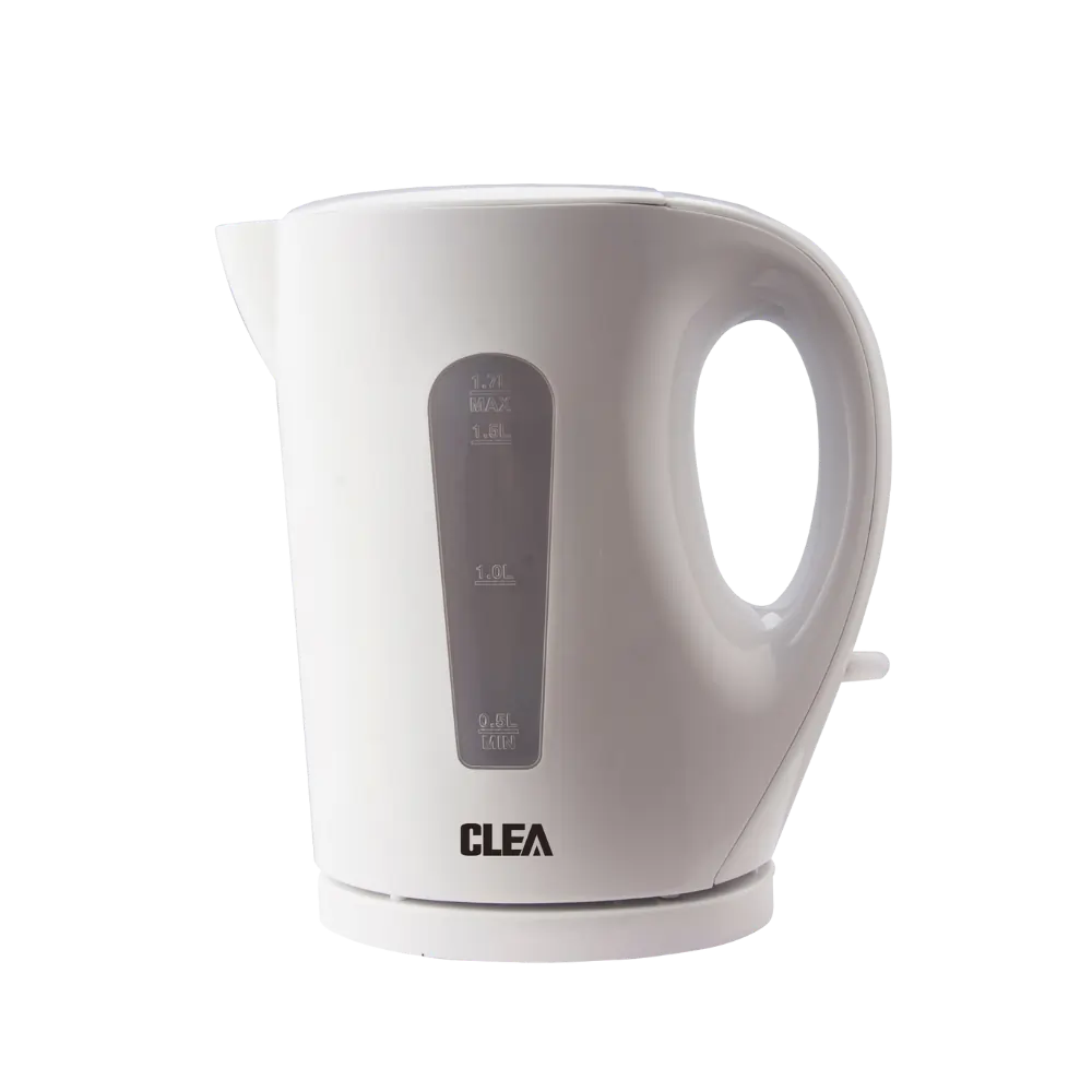 1.7 L swivel-base plastic kettle with stainless accents, STRIX safety control, auto lid-open, side water window, and illuminated switch.