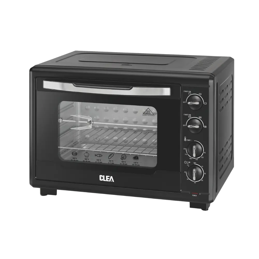 Roomy 55L convection toaster oven with rotisserie, powerful 2000W performance for fast, even family-size cooking.