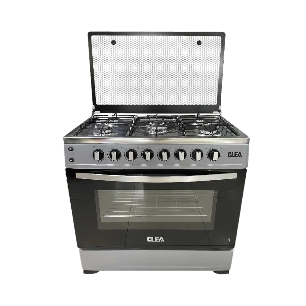 Flagship 90×60 full gas cooker with a powerful triple-ring burner, pulse ignition, twin oven burners, timer and a full-glass double-glazed door.