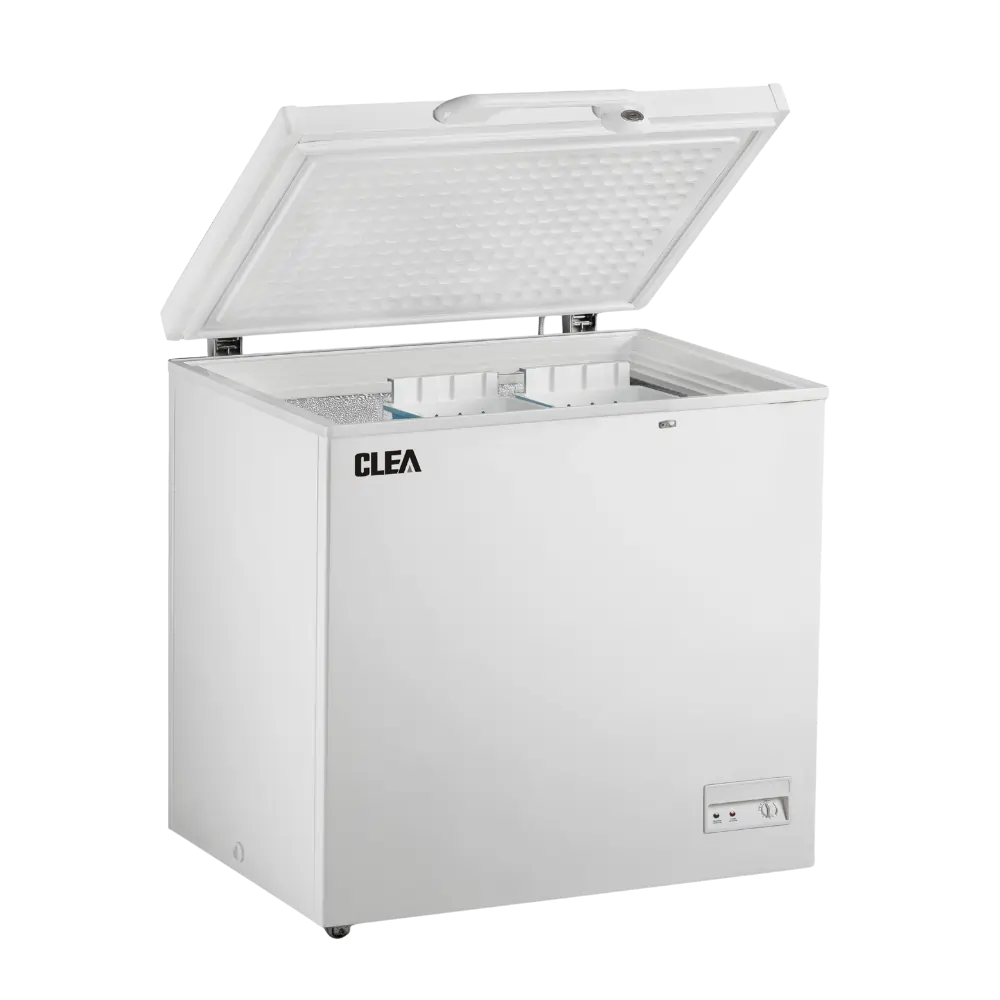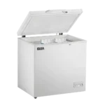 This medium-size chest freezer gives dependable frozen storage without taking much space. It holds 271 liters and keeps a steady −18 °C. The outside condenser improves heat release, and R600a helps reduce energy use. Manual defrost is straightforward and keeps performance stable. A good fit for kitchens, kiosks, and backup stock.