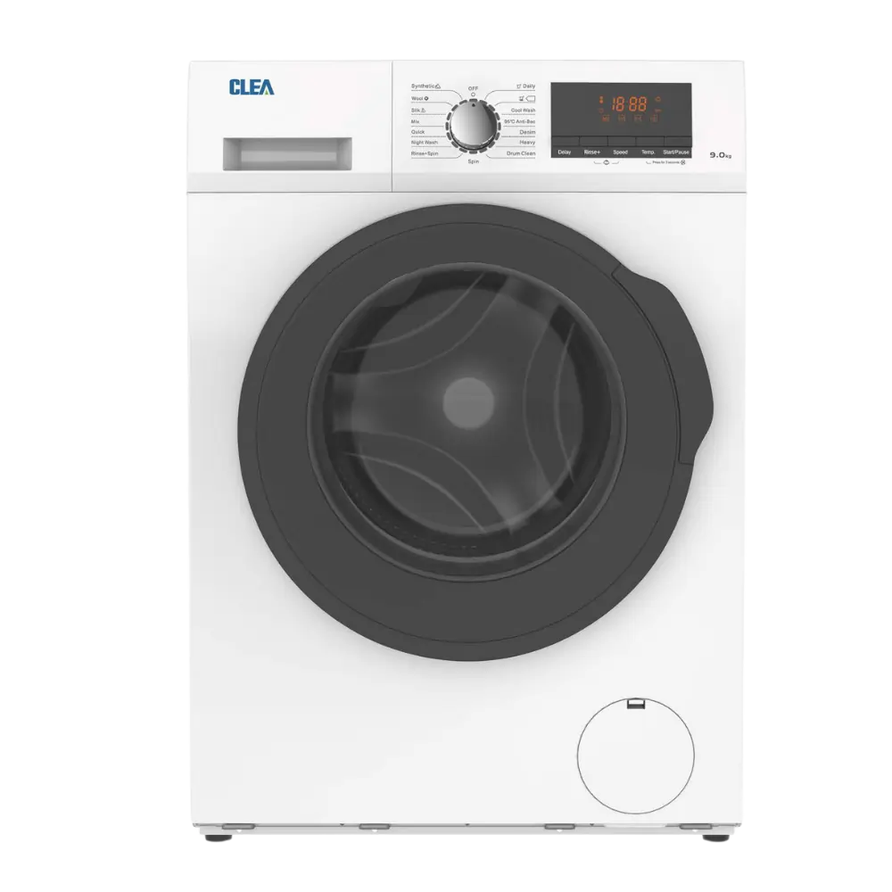 This 9 kg front load washer suits busy households. It delivers high efficiency with an A+++ rating and spins at up to 1200 rpm to shorten drying time. The LED display makes programs clear, while the stainless steel drum protects fabrics and resists wear. Simple controls and a clean white finish fit any utility space.