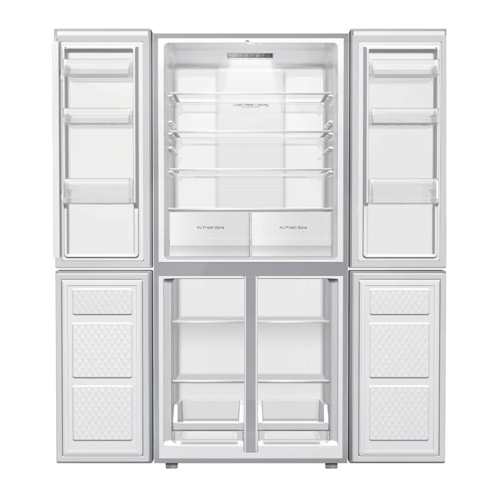 This 485 liter refrigerator offers generous space with clear organization for fresh food and frozen items. A+ efficiency and R600a refrigerant keep power use low, while smart mode and electronic temperature control maintain stable cooling. Fast freezing protects new groceries, and adjustable glass shelves make layout changes easy. The recessed handle and clean lines suit modern kitchens.